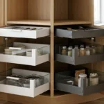 Другое удачное решение для обладателей компактной ванной комнаты. Для этого нужно прибить полочки и установить ровно на том месте, которое обычно пустует. Но сперва нужно внимательно просчитать расположение этих полок с учётом позы сидящего человека, дабы ему было комфортно и не приходилось быть постоянно наклонённым.
