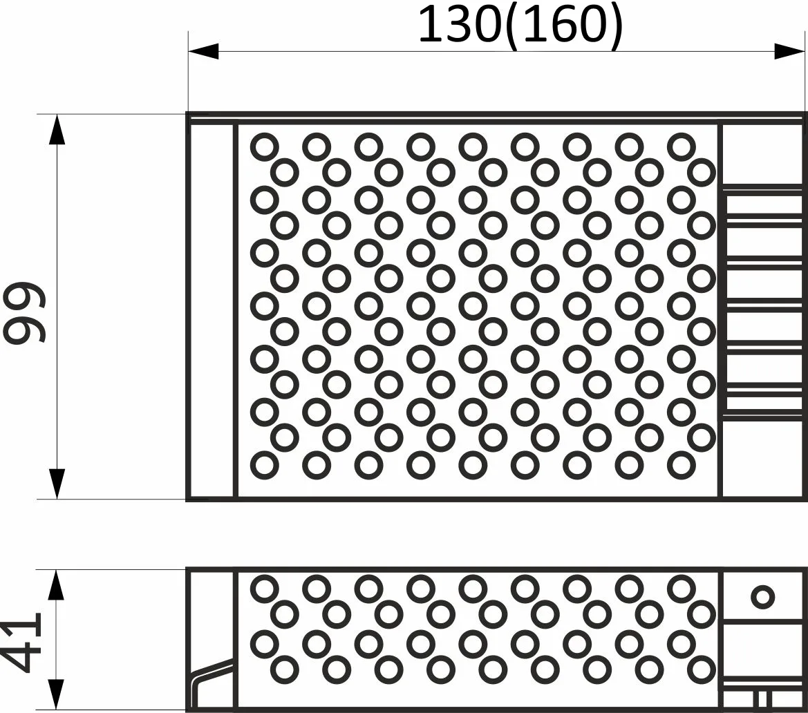 Размеры 130х99х41 мм, Вх.напряж. 110-220V AC, вых напряж. 12V DC, мощность 100Вт, сила тока 8.33A, степень защиты IP20.