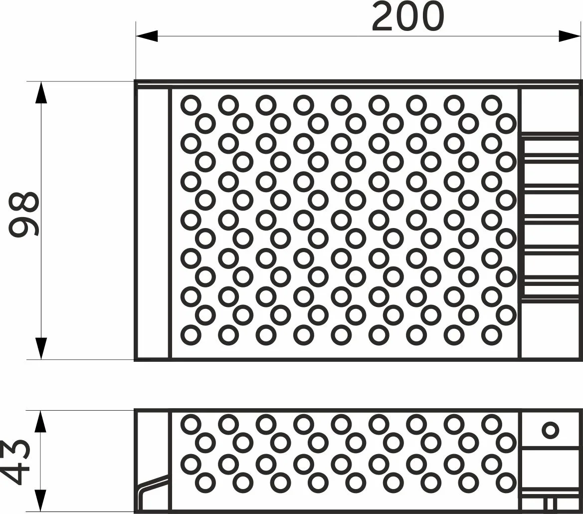 Размеры 200х98х43 мм, Вх.напряж. 110-220V AC, вых напряж. 12V DC, мощность 150Вт, сила тока 12.5A, степень защиты IP20.