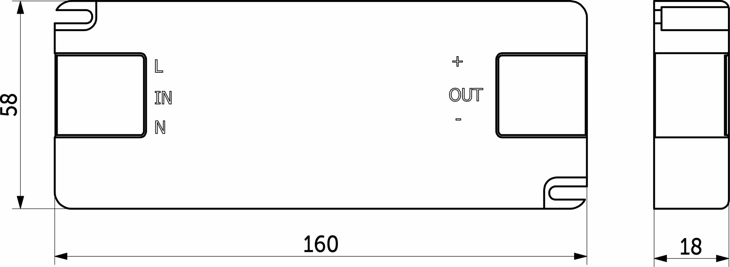 Очень тонкий блок питания закрытого типа, предназначен для установки в узких местах.