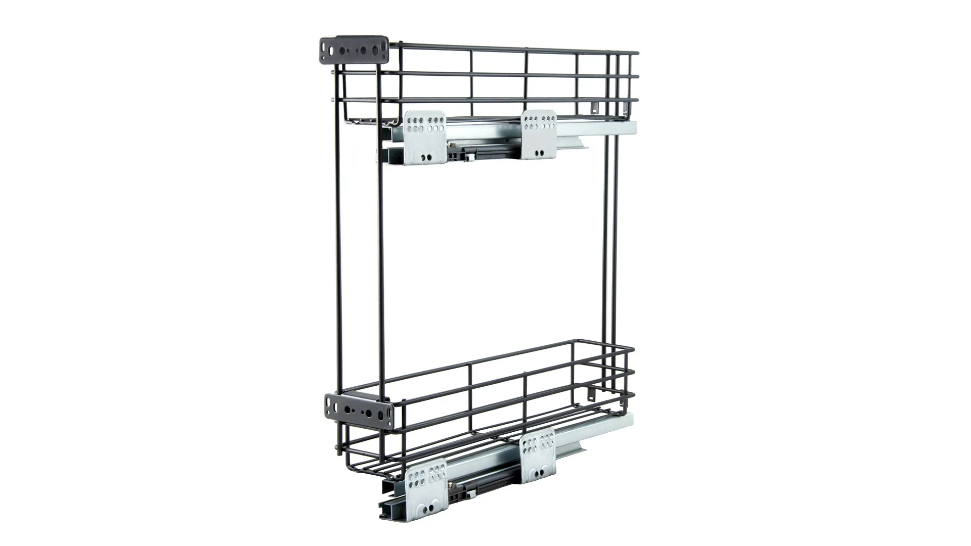 Bellissimo функционирует на направляющих скрытого монтажа полного выдвижения с амортизацией. Модель обеспечит удобный полный доступ к продуктам и жидкостям. Ассортимент Bellissimo включает четыре варианта бутылочниц для нижних баз кухонных гарнитуров: для модулей размером 150 мм и 200 мм с левым или правым расположением направляющих.