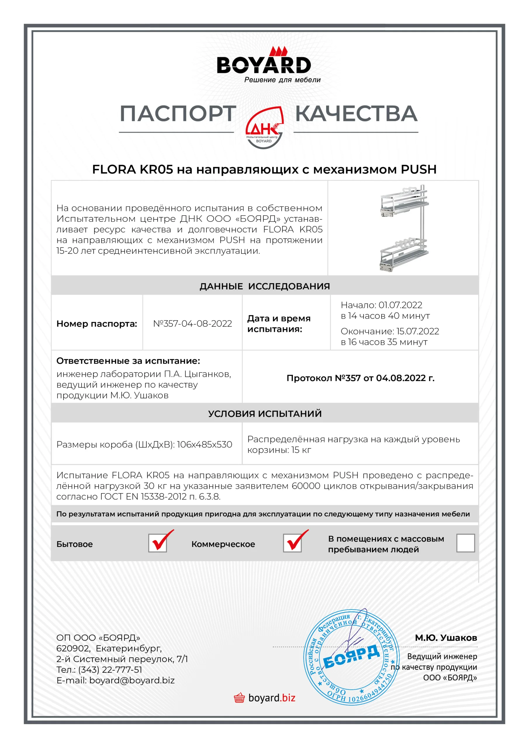 Бутылочница FLORA PUSH KR05/1/4/200/L/GRPH