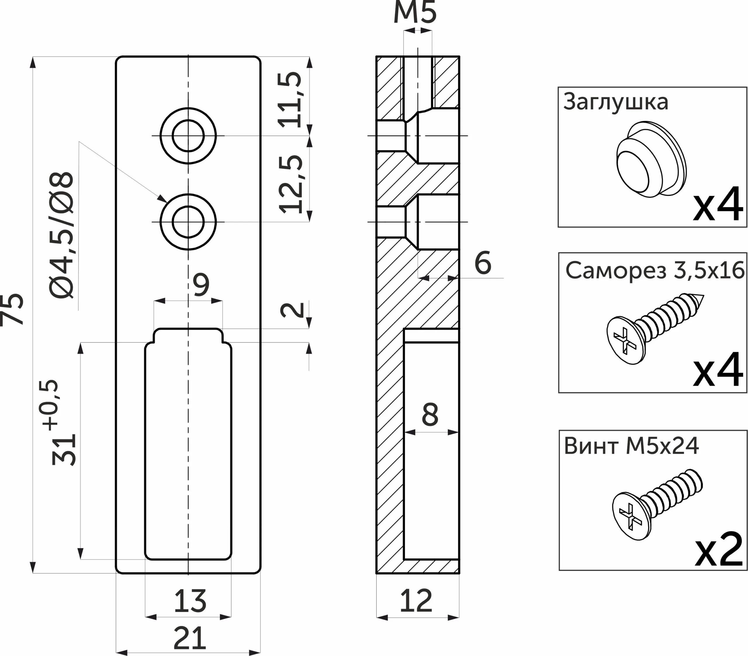 | Вид трубы | Для трубы прямоугольной |