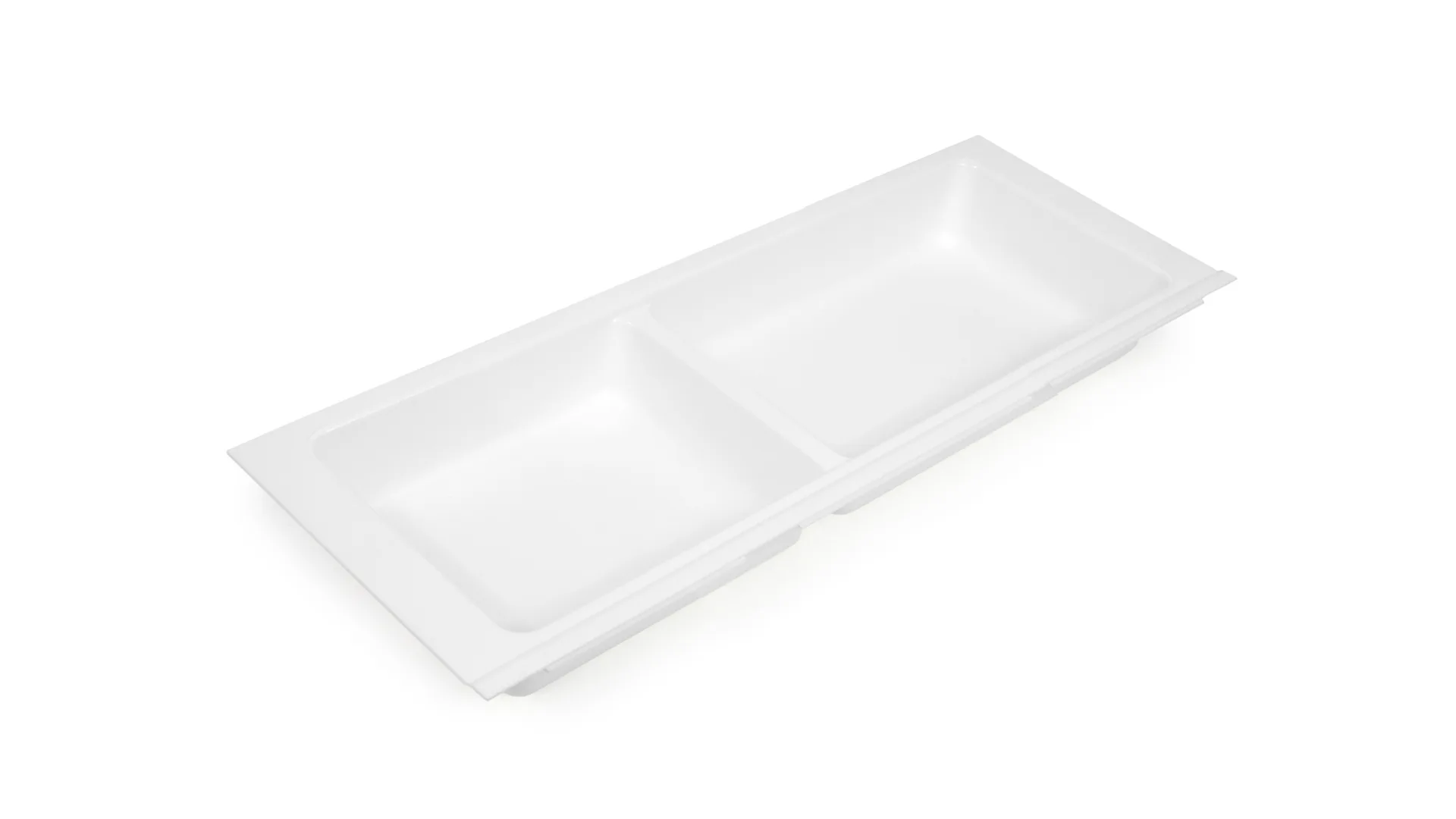 PC13 — широкий поддон из экологичного полипропилена, необходим для хранения столовых приборов. Является составным элементом для формирования индивидуальной комбинации поддонов линейки BLӦKI для выдвижных мебельных ящиков глубиной 450 мм и шириной от 500 мм.