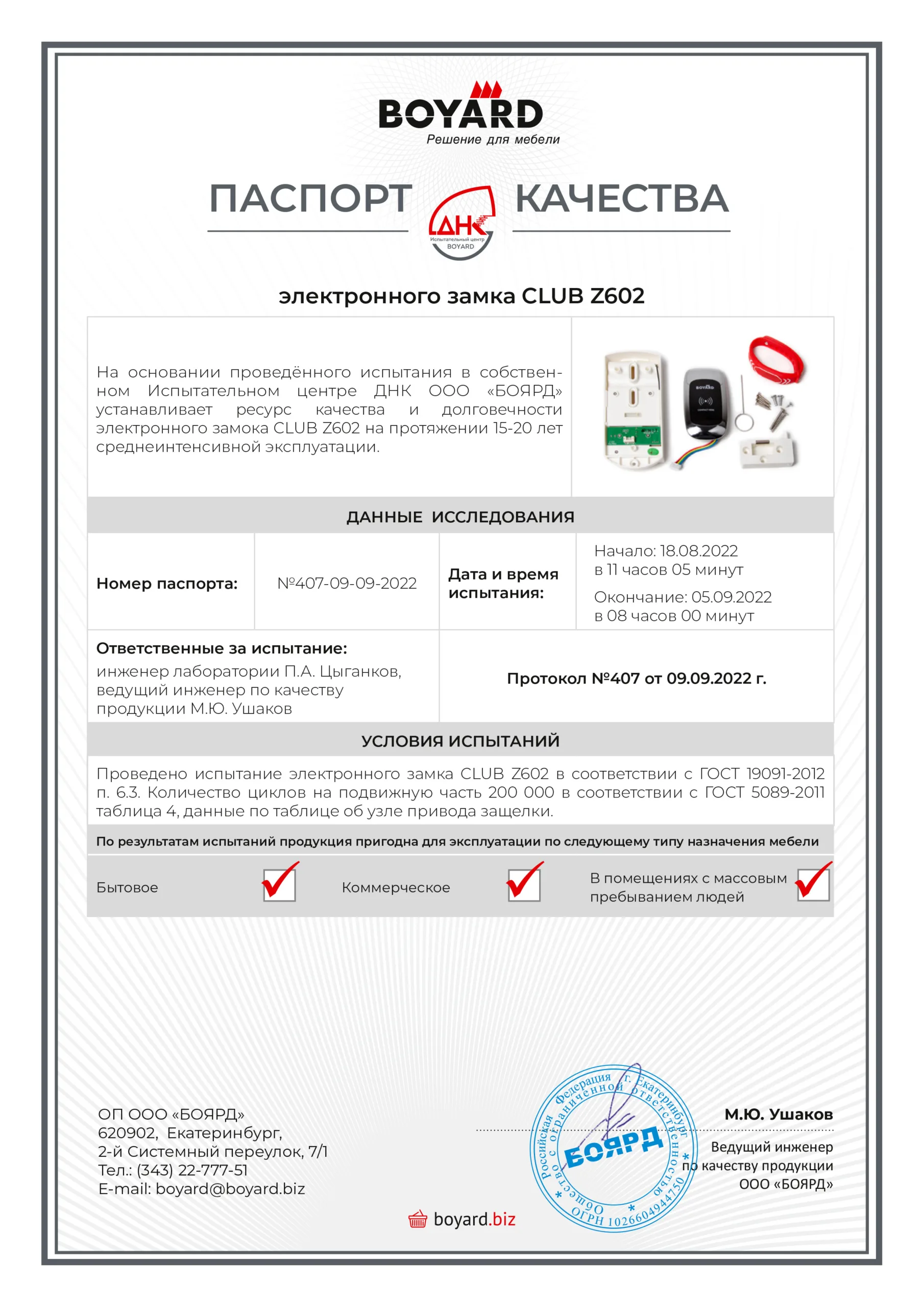 | Вид замка | Электронный |