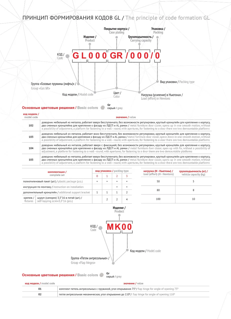 GL104 поставляется в комплекте с тремя кронштейнами — для крепления к боковой стенке корпуса, для крепления к фасаду из плитных материалов (ЛДСП/МДФ) и к фасаду из алюминиевого профиля.