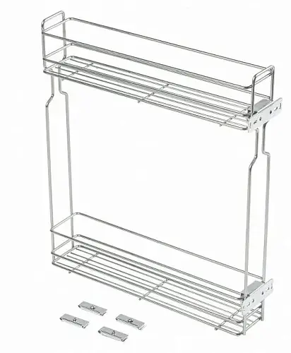 Двухуровневая боковая корзина без направляющих, с крепежом, — выдвижная система хранения, устанавливаемая в нижний модуль кухонного гарнитура. Корзина изготовлена так, что в нее удобно ставить бутылки с напитками и жидкими продуктами питания, поэтому она также называется бутылочницей.