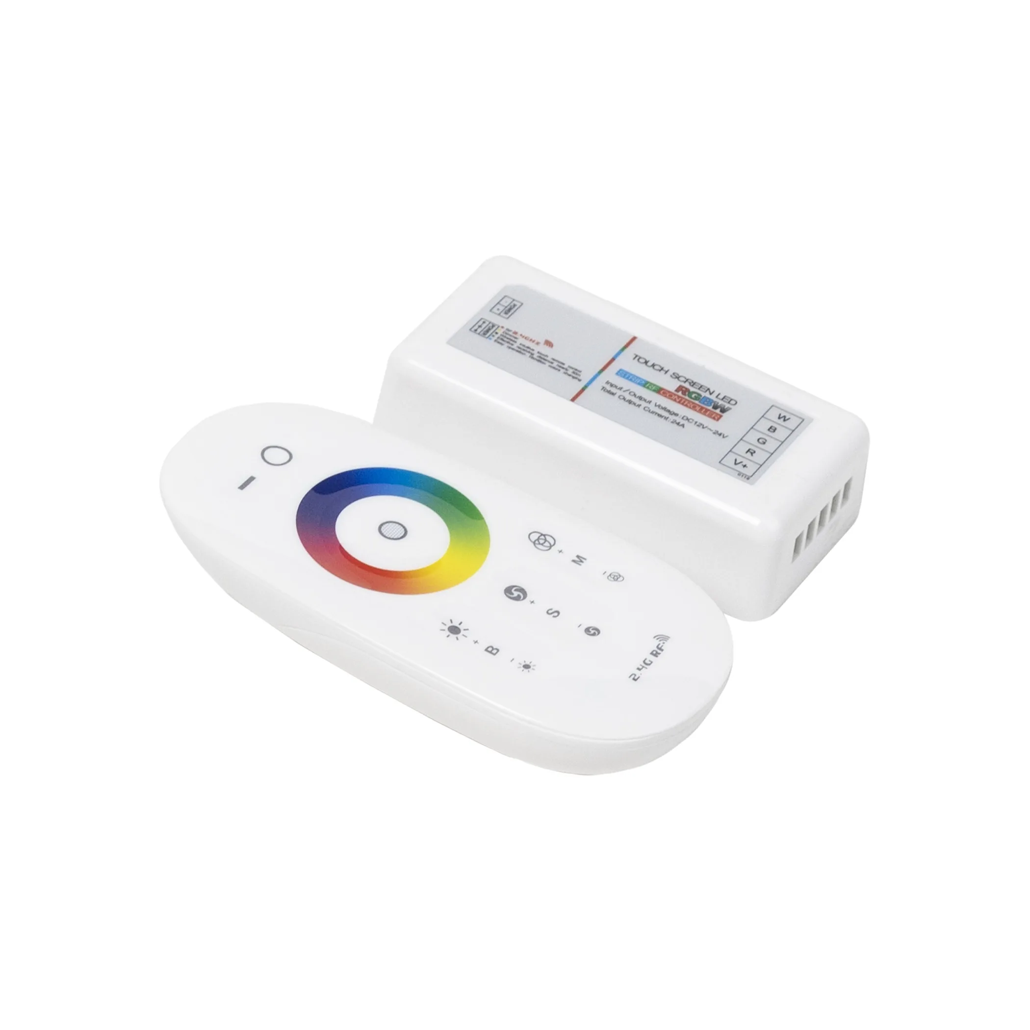 Комплект пульта и контроллера для управления RGBW лентой, пульт рассчитан на управление только одним контроллером, рабочее напряжение контроллера 12-24VDC,сила тока на канал, максимальная мощность 288W/576W.