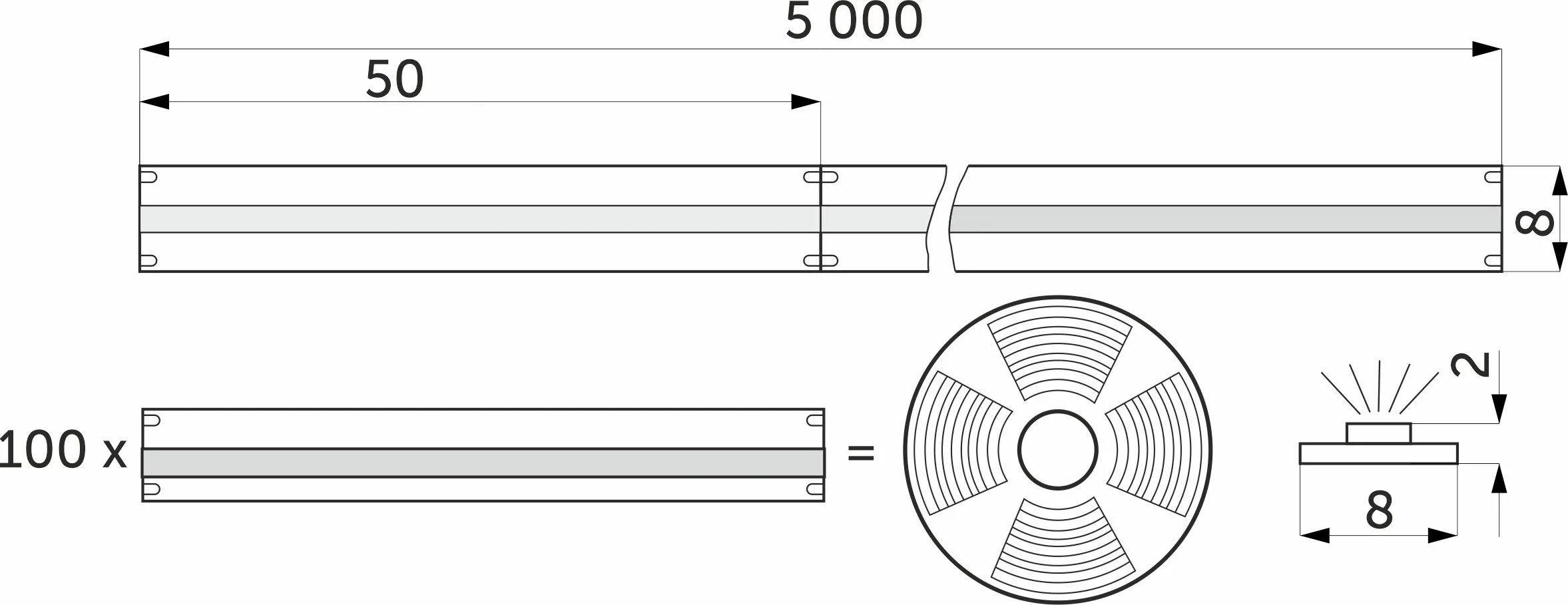COB лента, количество диодов 320д/м, напряжение 24В, степень защиты IP20, мощность 9,8W/m, ширина 8 мм, нейтральный белый (4000K), CRI>90, 1100 Lm, 5м.