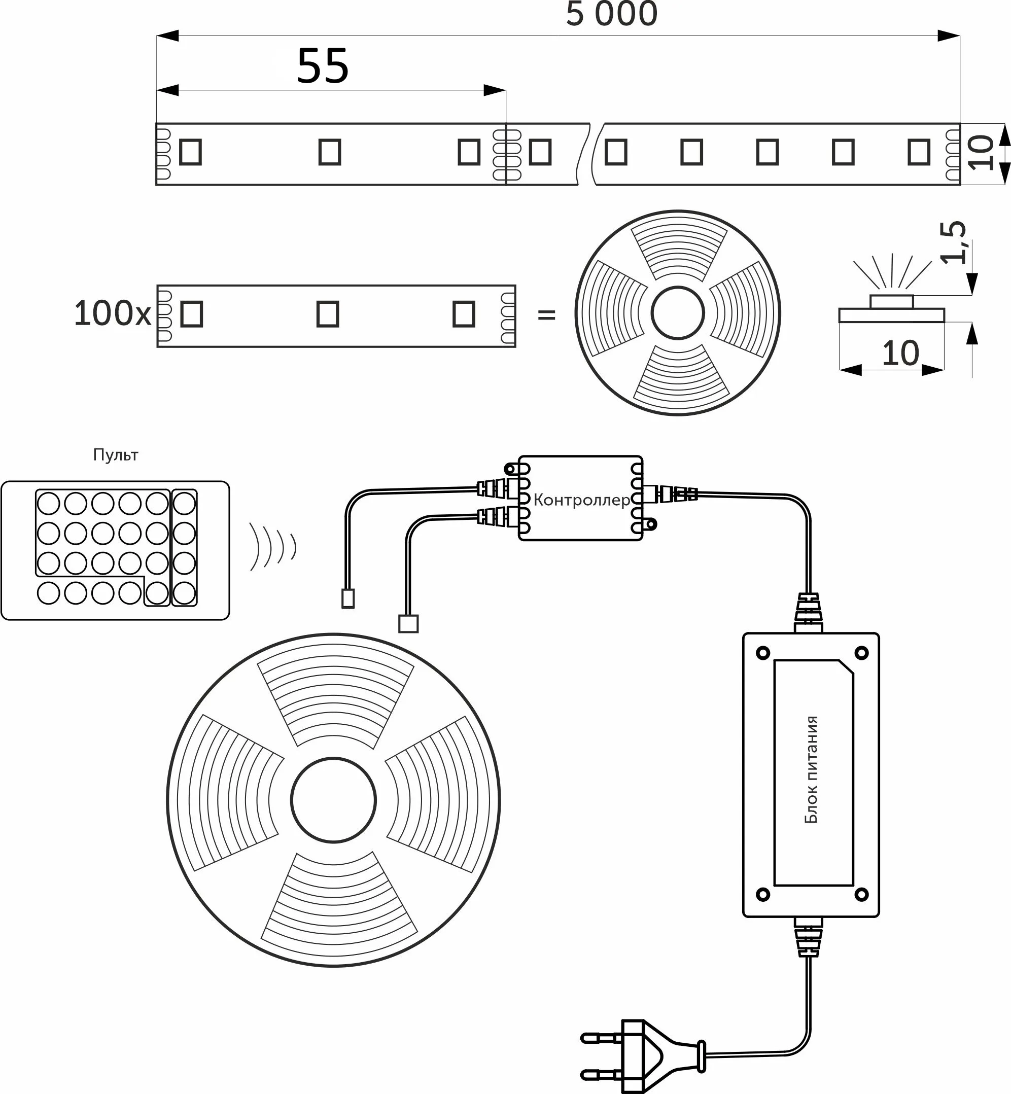 В комплекте так же идет блок питания и контроллер.