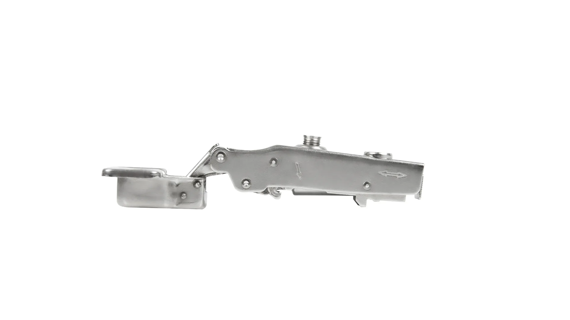 Суммарная 3D-регулировка, стрелки на теле петли и регулировочный винт с ограничителем обеспечат оперативный и корректный монтаж без рисков поломки амортизатора. Регулировка по вертикали осуществляется при помощи эксцентрикового винта в корпусе ответных планок.