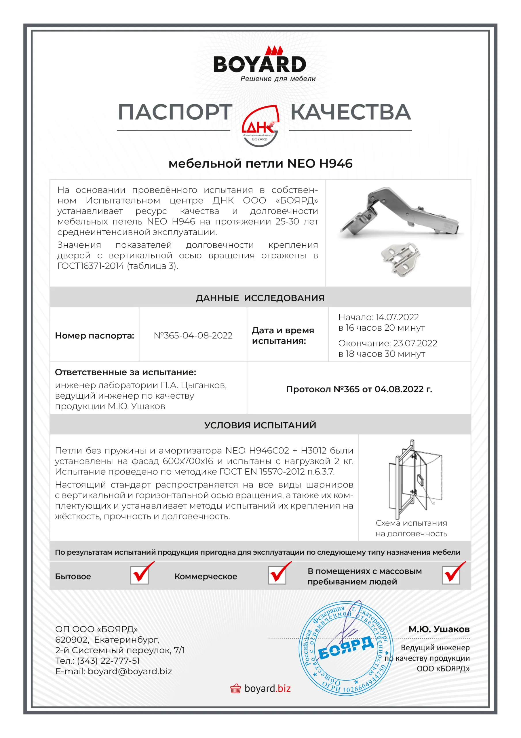Модель входит в линейку современных петель NEO, которая создана в соответствии с международными стандартами для производителей качественной мебели сегментов «средний» и «средний+».