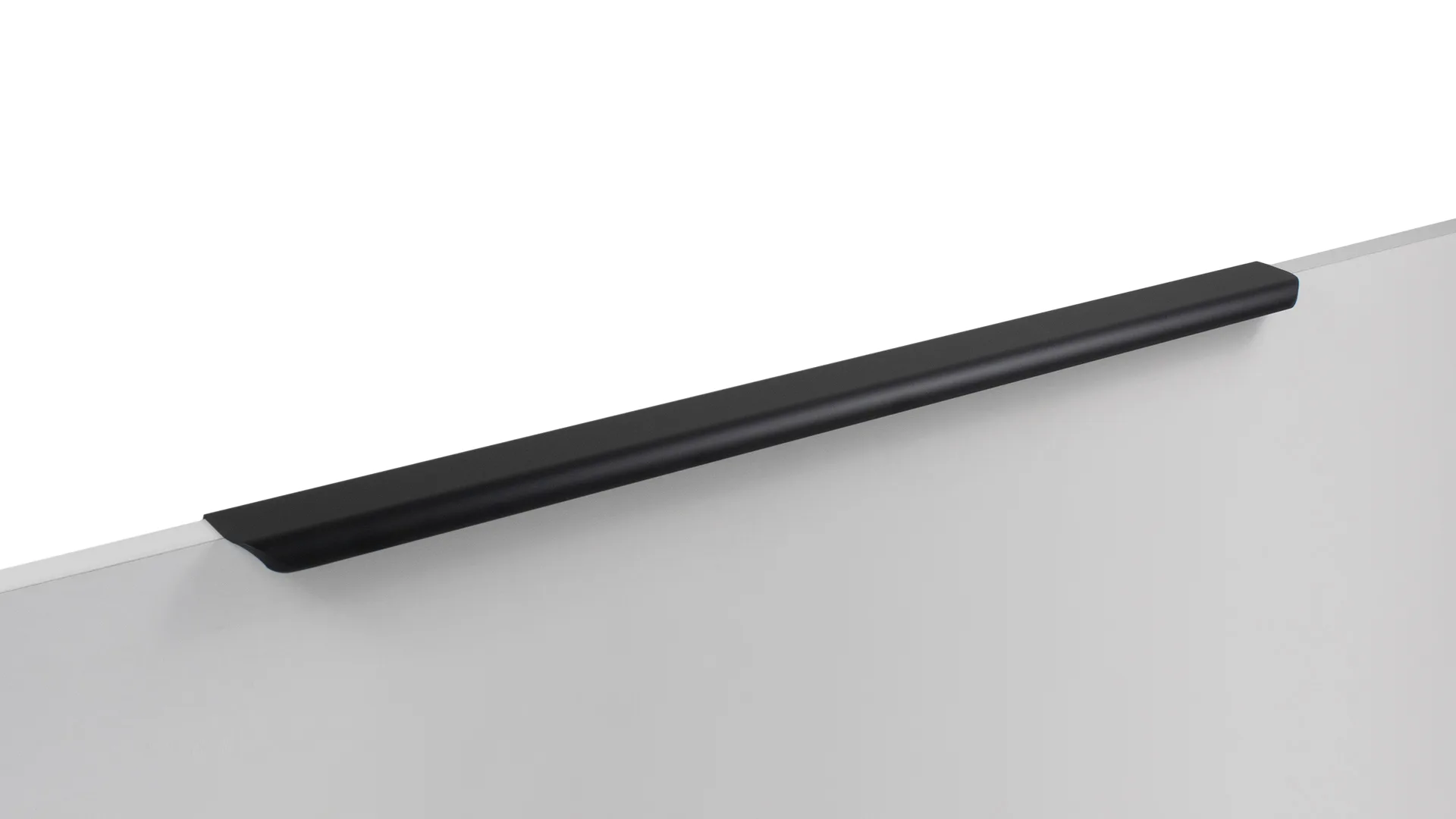 Ручка имеет богатое разнообразие длин. В зависимости от длины модель можно разместить двумя способами — «в размер» фасада и по центру широких фасадов (как большой «язычок»).
