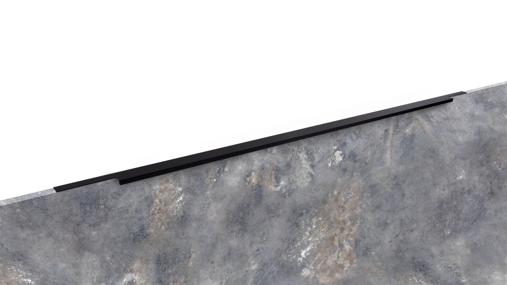 Ручка имеет богатую палитру цветовых решений и разнообразие длин. В зависимости от длины, модель допускает размещение двумя способами — «в размер» фасада и по центру широких фасадов (как большой «язычок»).