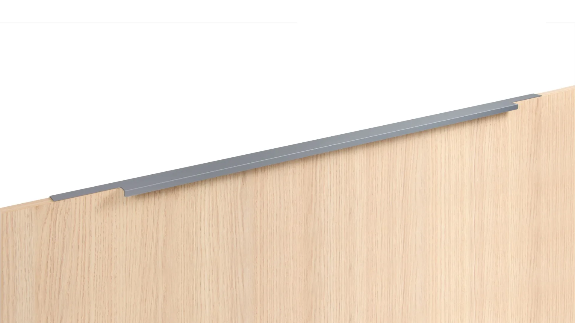 Ручка имеет богатую палитру цветовых решений и разнообразие длин. В зависимости от длины, модель допускает размещение двумя способами — «в размер» фасада и по центру широких фасадов (как большой «язычок»).