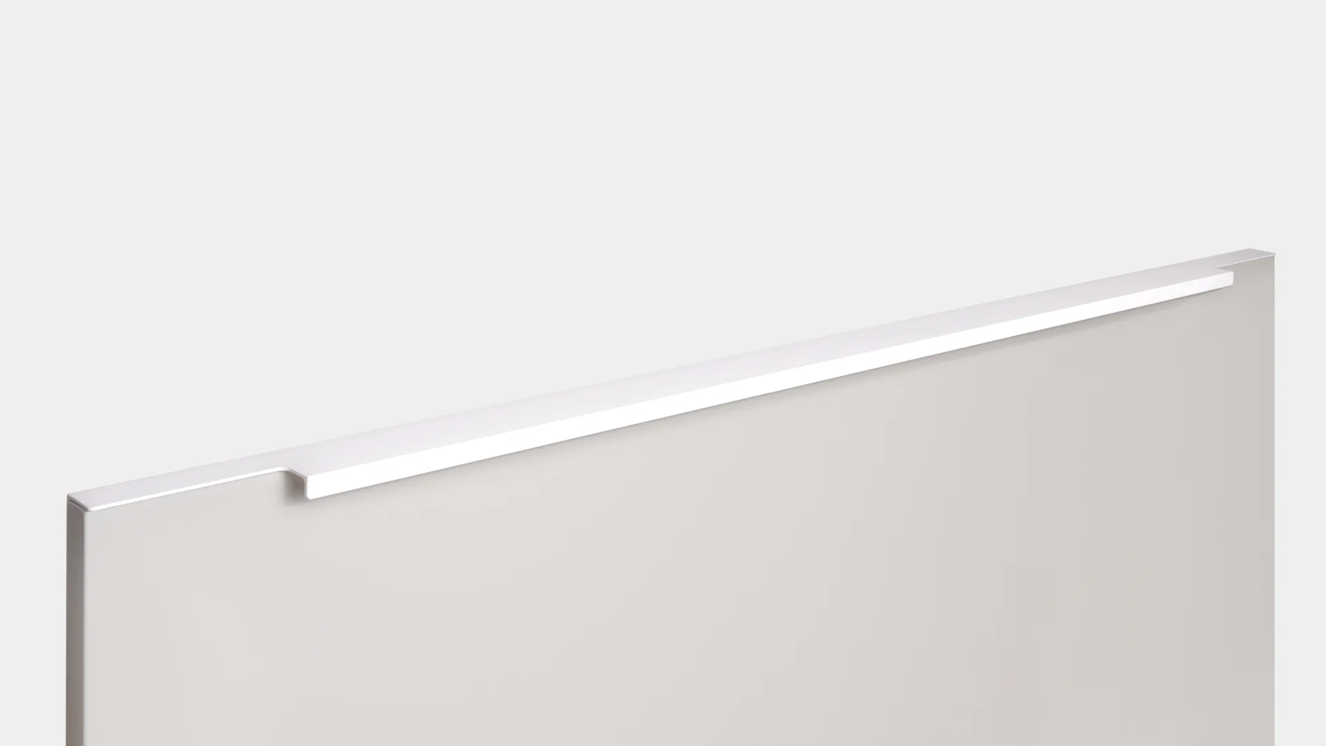 Ручка имеет богатую палитру цветовых решений и разнообразие длин. В зависимости от длины, модель допускает размещение двумя способами — «в размер» фасада и по центру широких фасадов (как большой «язычок»).