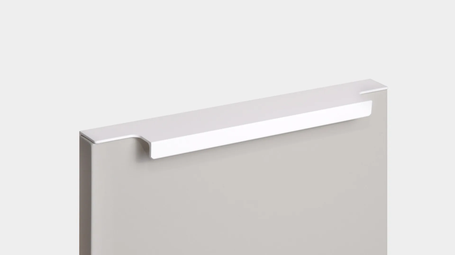 Ручка имеет богатую палитру цветовых решений и разнообразие длин. В зависимости от длины, модель допускает размещение двумя способами — «в размер» фасада и по центру широких фасадов (как большой «язычок»).