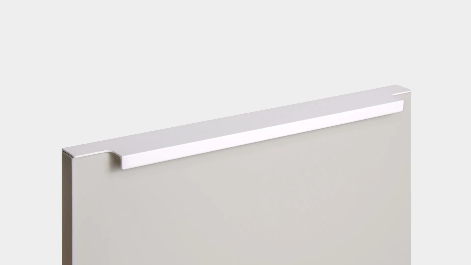 Ручка имеет богатую палитру цветовых решений и разнообразие длин. В зависимости от длины, модель допускает размещение двумя способами — «в размер» фасада и по центру широких фасадов (как большой «язычок»).