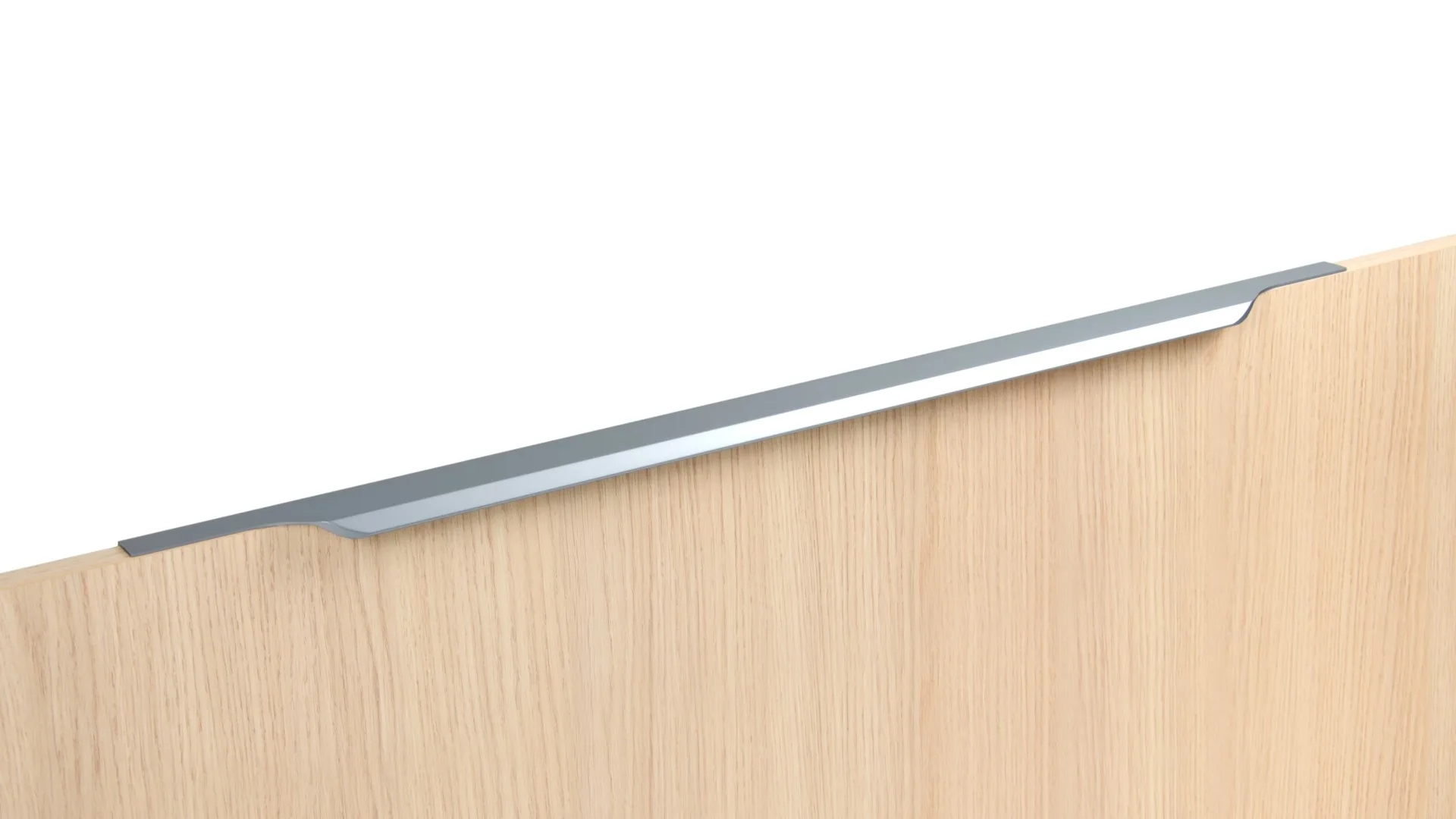 TERA подойдёт как для узких бутылочниц и корзин-карго, так и ящиков формата макси. Торцевую ручку, независимо от размера, можно устанавливать не только чётко в размер фасада, но и как широкий язычок. Ручки в виде язычков прекрасно выполняют свою функциональную и эстетическую роль на более широких фасадах.