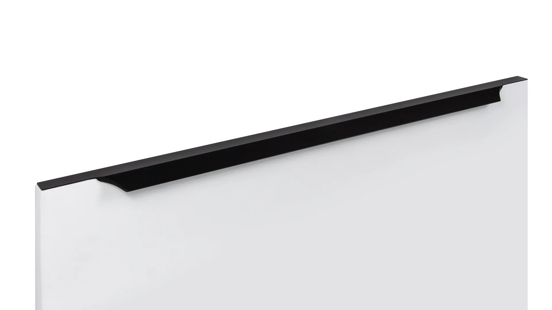 WING RT114 — торцевая ручка с изгибом из алюминия, устанавливается наложением на фасады толщиной 18,8 мм (в цветах BL,GR,SC,SG) и 18,5 мм (в цвете W).
