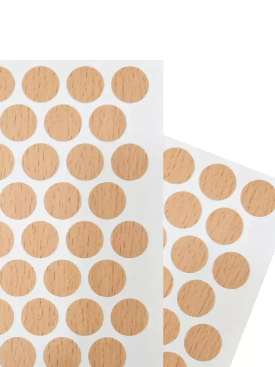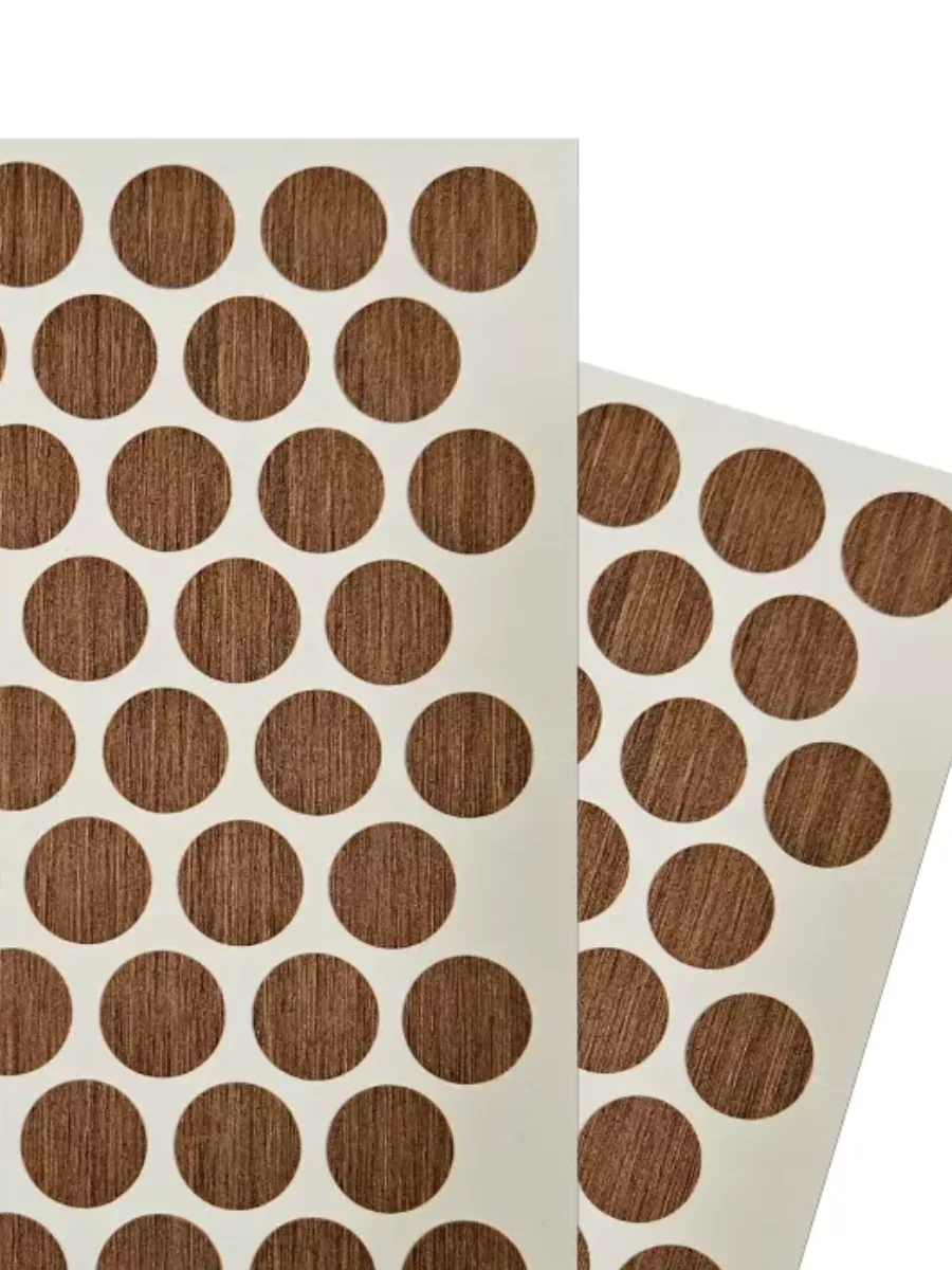 Мебельные наклейки используются для декоративной заделки технологических отверстий, придавая изделиям завершённый и эстетичный вид.