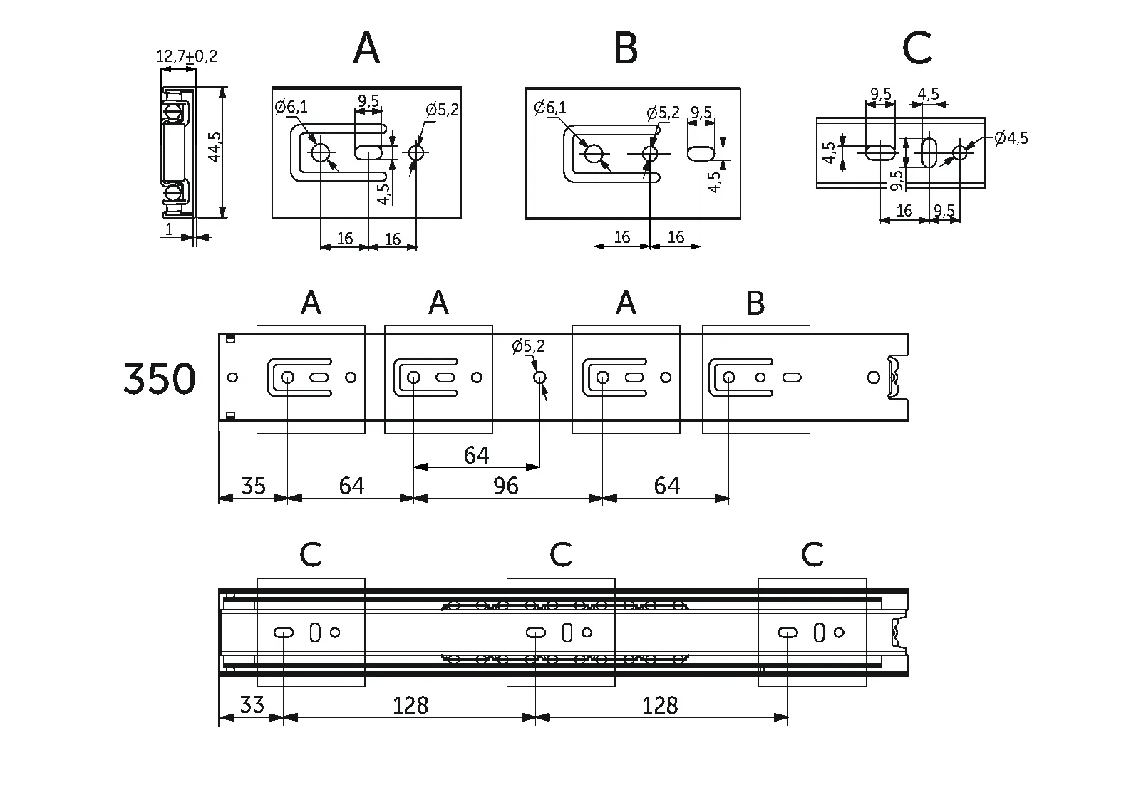 Модель выполнена в черном цвете, имеет высоту профиля 45 мм и поставляется комплектом из двух направляющих — левой и правой. Если вы сравниваете разные типы механизмов, всю линейку похожих решений можно посмотреть в разделе шариковых направляющих полного выдвижения.