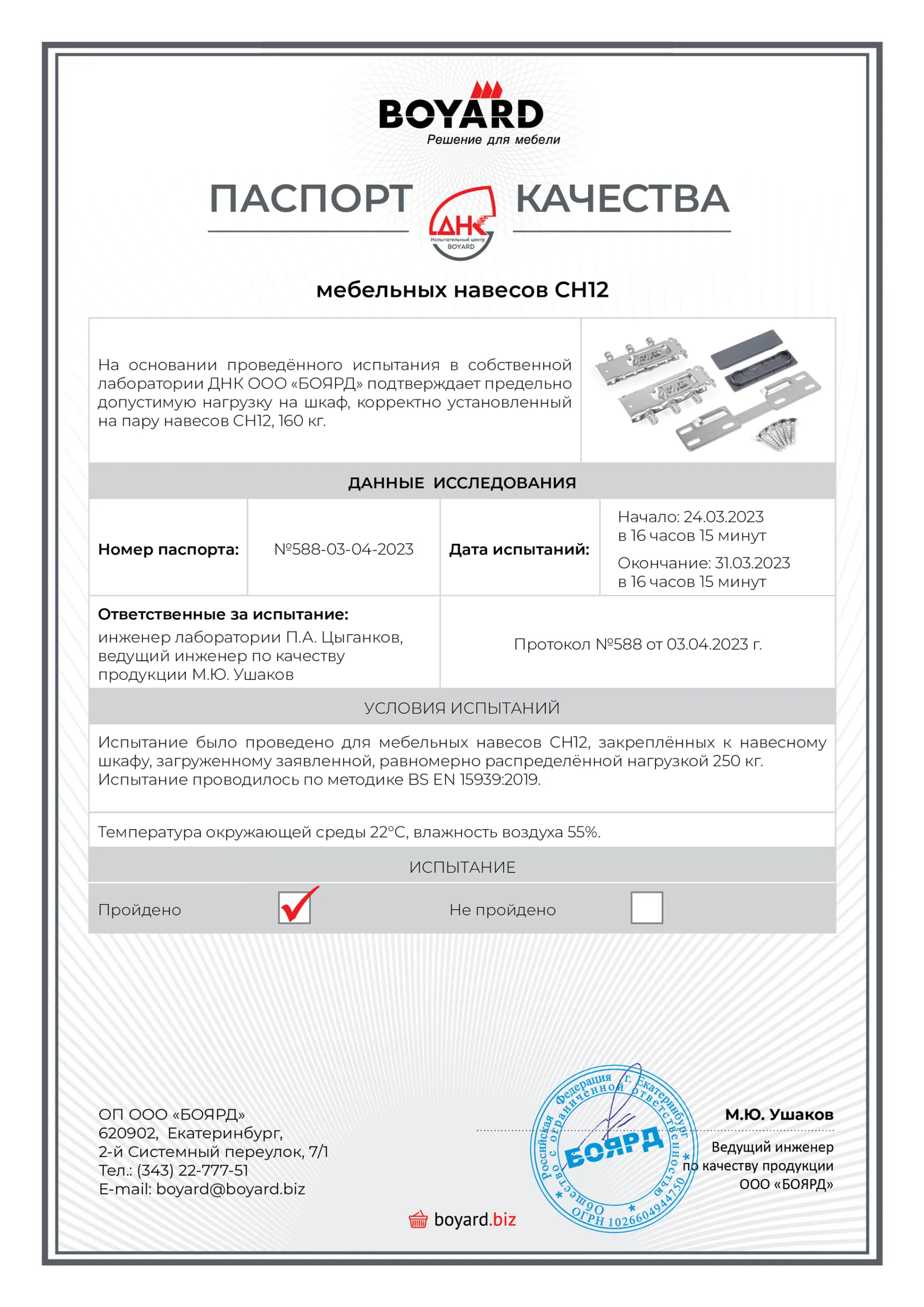 CARABIN CH12 — навес для верхних мебельных баз с нагрузкой на пару до 160 кг.