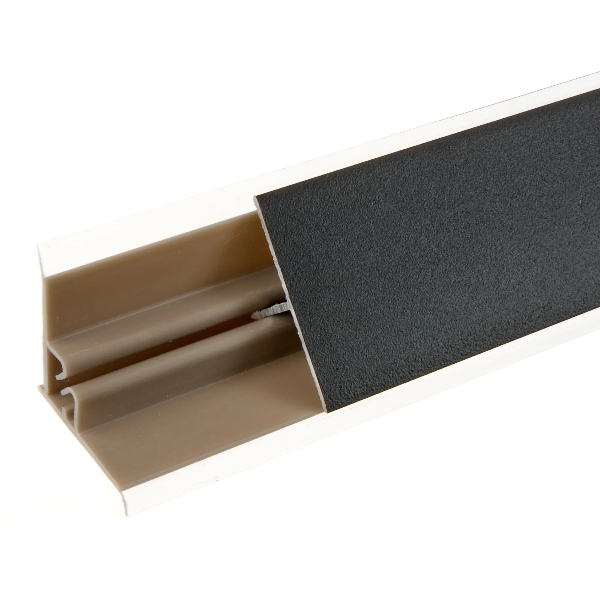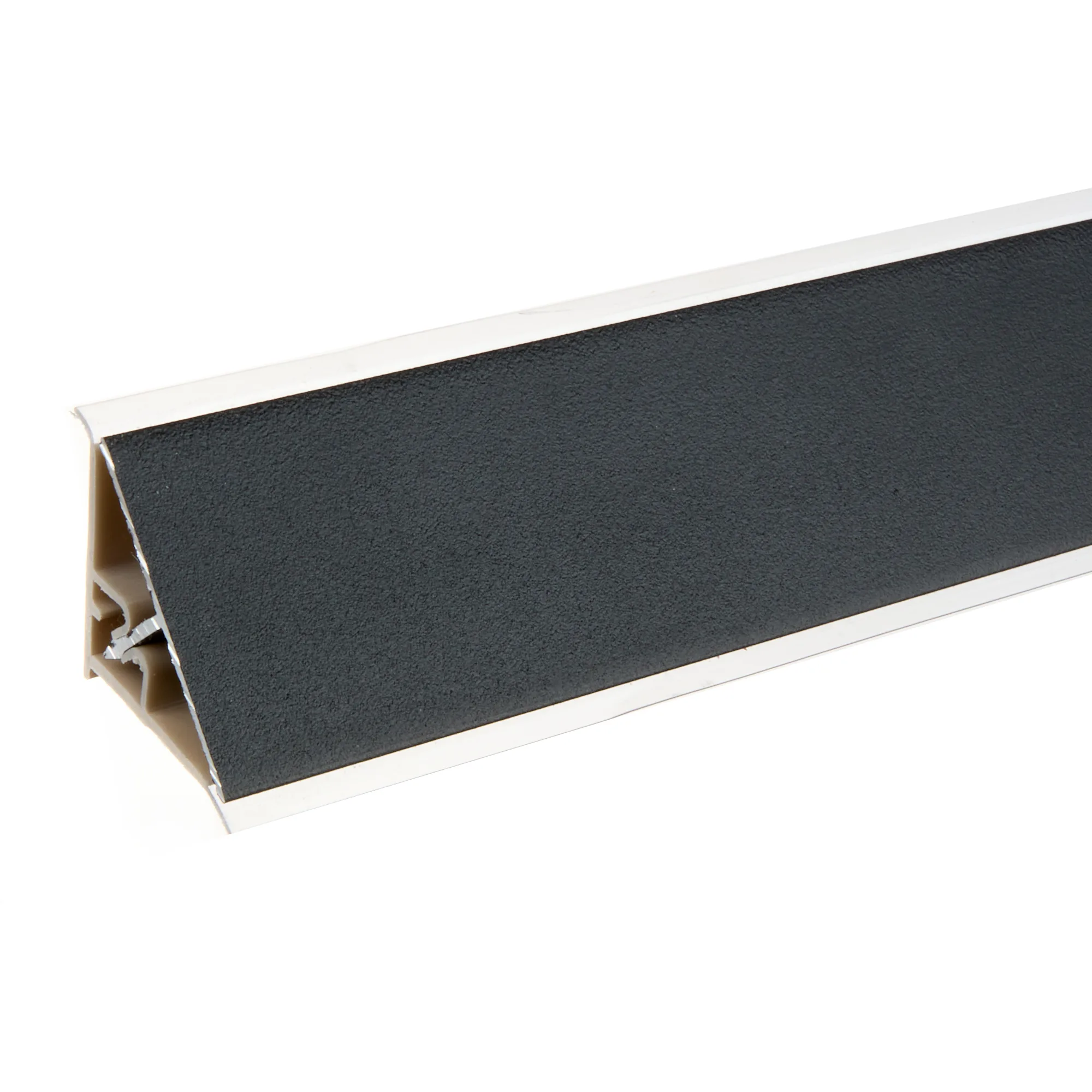 Плинтус из анодированного алюминия предназначен закрывать стык столешницы и стеновой панели кухонного гарнитура. Плинтус выполняет роль водоотбойника и защищает от грязи и влаги заднюю стенку кухонных шкафов. Плинтус Плато - треугольный, с силиконовым краем для плотного прилегания.
