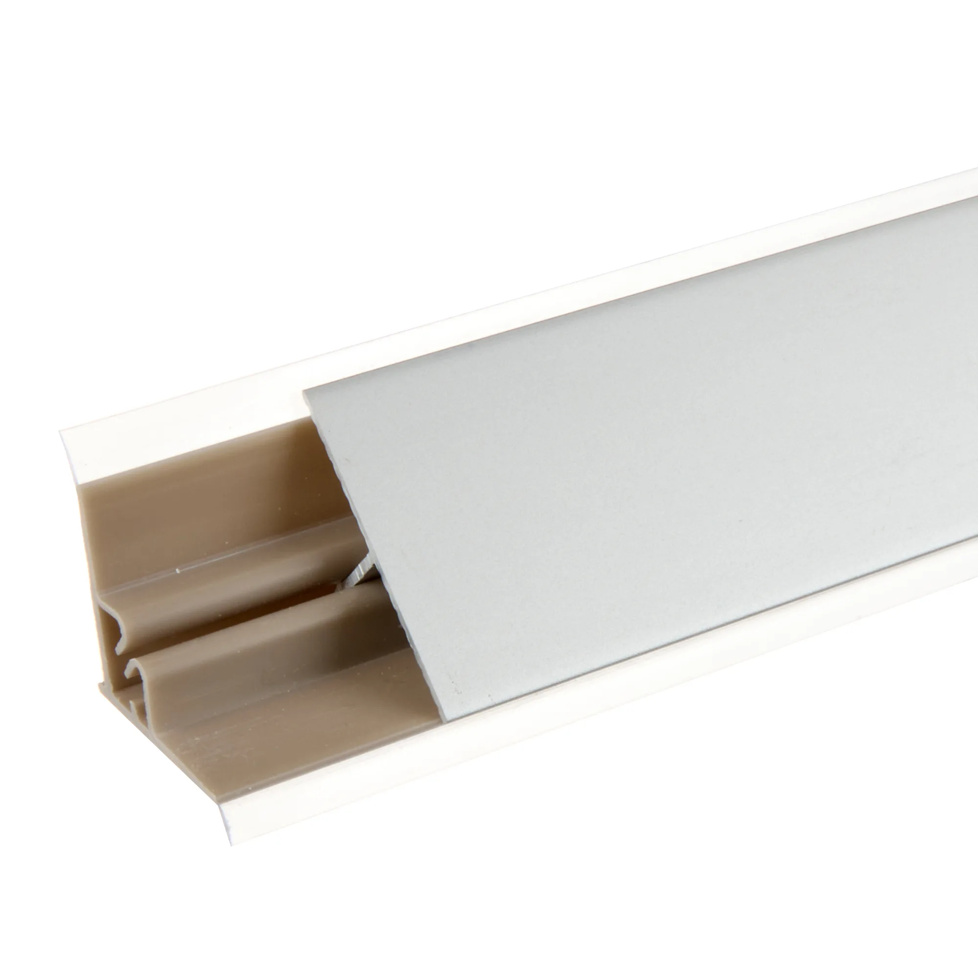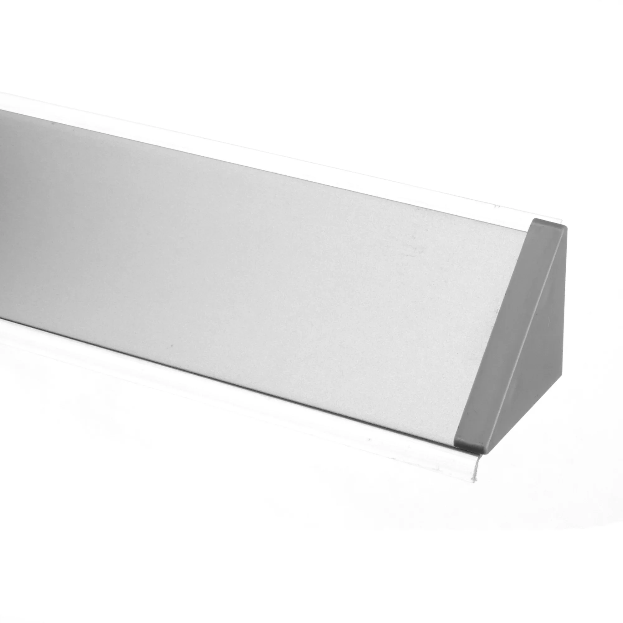 Плинтус из анодированного алюминия предназначен закрывать стык столешницы и стеновой панели кухонного гарнитура. Плинтус выполняет роль водоотбойника и защищает от грязи и влаги заднюю стенку кухонных шкафов. Плинтус Плато - треугольный, с силиконовым краем для плотного прилегания.
