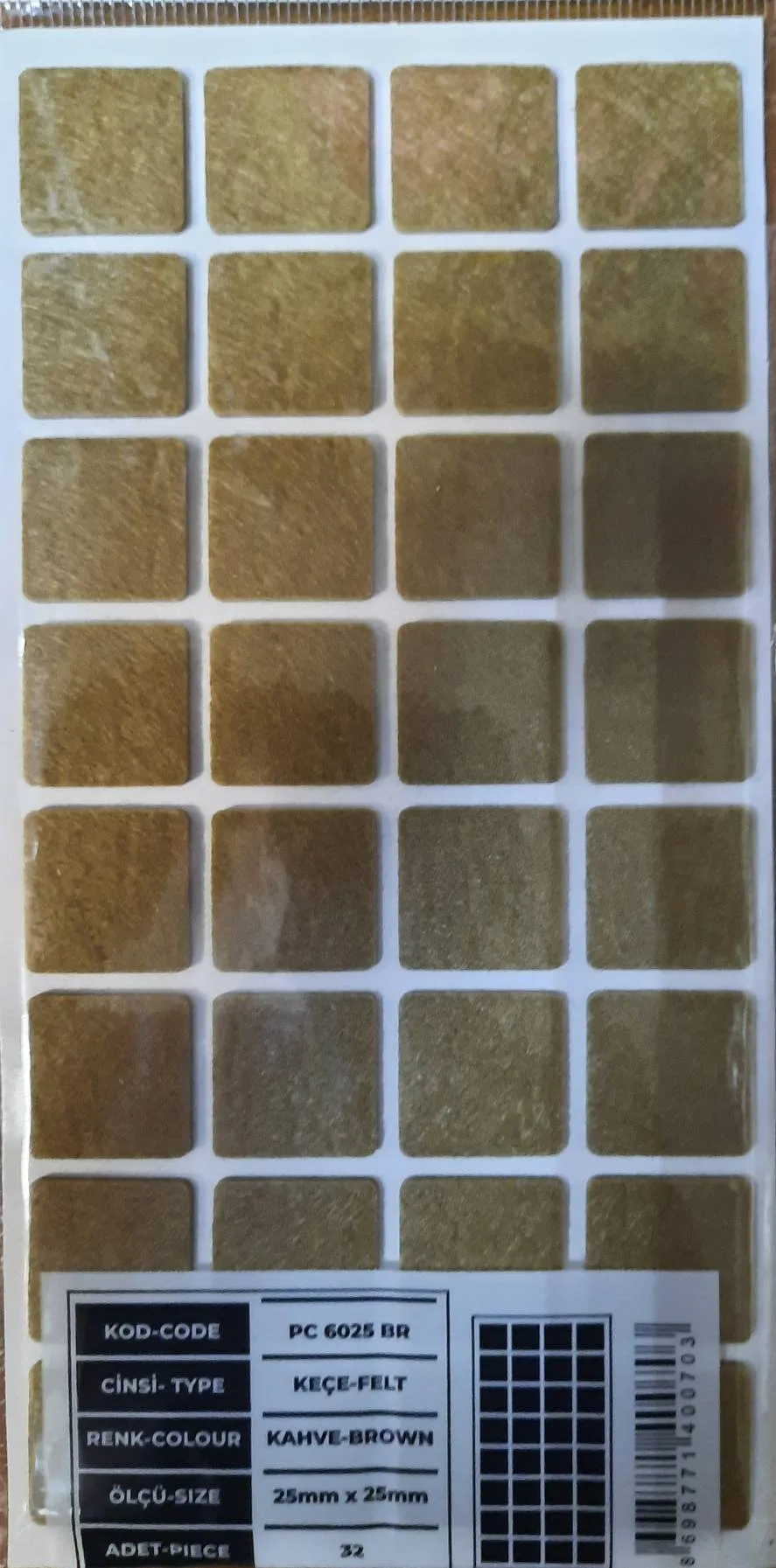 Подпятник 25*25 коричневого цвета — это качественная мебельная фурнитура, которая обеспечивает надёжную опору для мебели. Изготовлен из прочного фетра толщиной 3 мм.