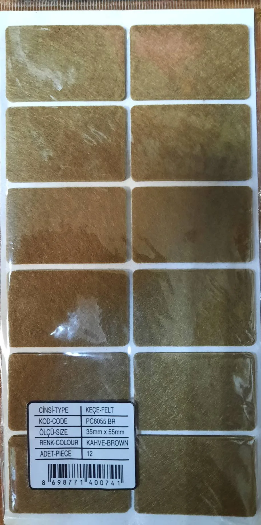 Подпятник 35*55 коричневого цвета — это качественная мебельная фурнитура, которая обеспечивает защиту пола от повреждений. Изготовлен из прочного фетра, имеет размер 35*55 мм и толщину 3 мм.