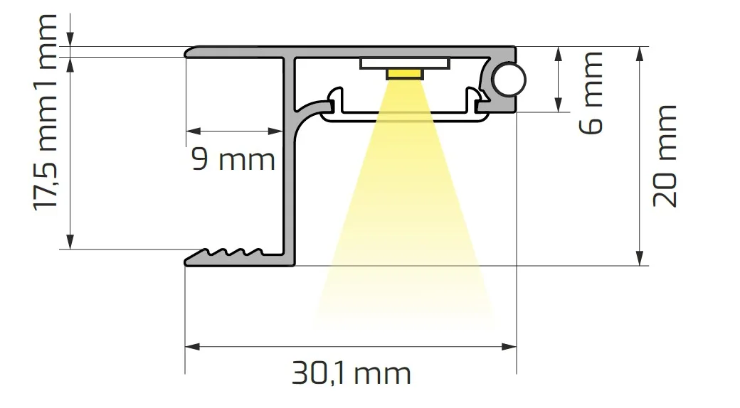 Используется в кухнях под фасадом, выполняет роль ручки.