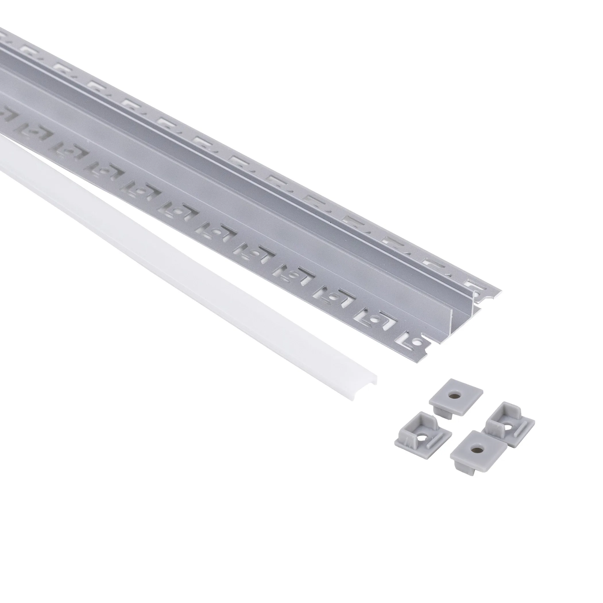 Профиль алюминиевый накладываемый на гипсокартон с экраном в индивидуальной упаковке, в комплекте с заглушками, предназначен для монтажа светодиодной ленты, длина 2м., внутренняя часть вмещает ленту шириной до 12 мм.