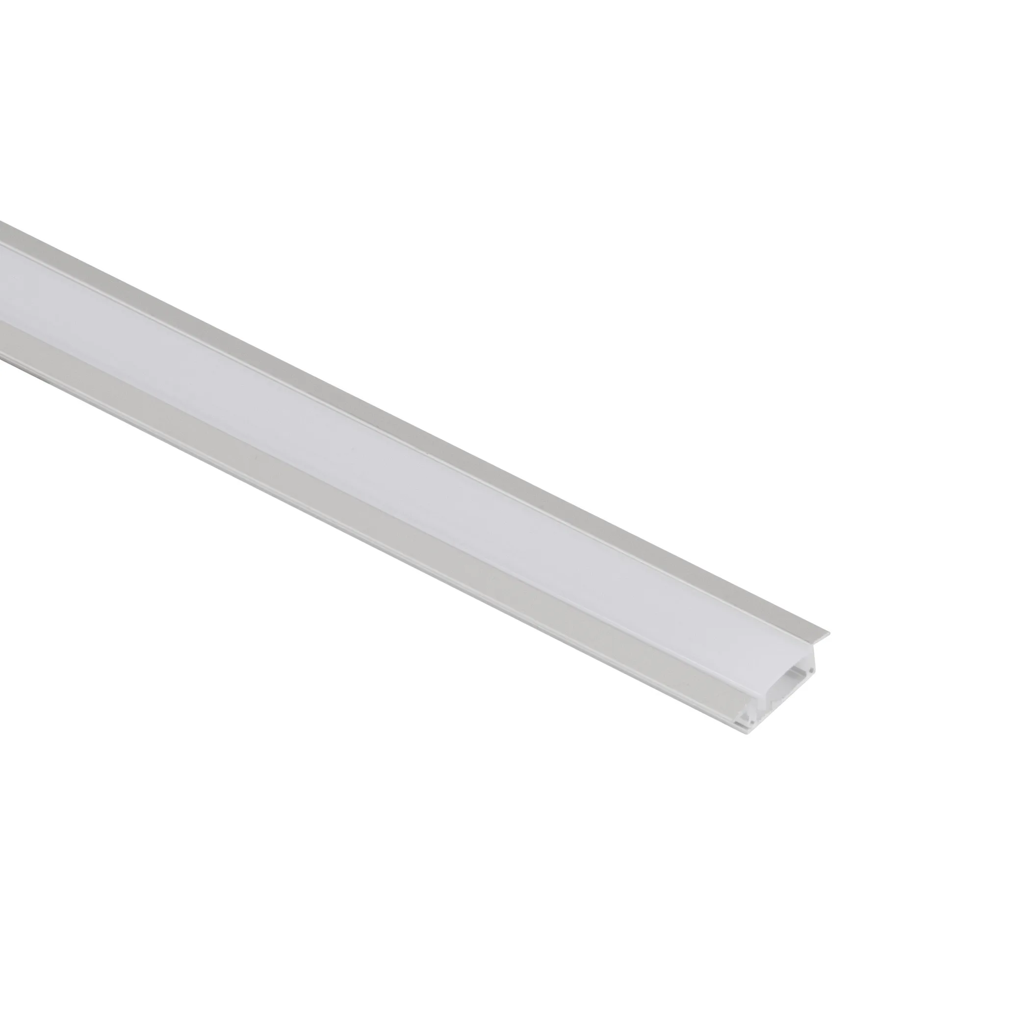 Врезной профиль в индивидуальной упаковке, (в комплекте 4 заглушки и 4 крепления, предназначен для монтажа светодиодной ленты, ширина фрезной части 17 мм, высота 7 мм, матовый экран, длина 2м., внутренняя часть вмещает ленту шириной до 12 мм.