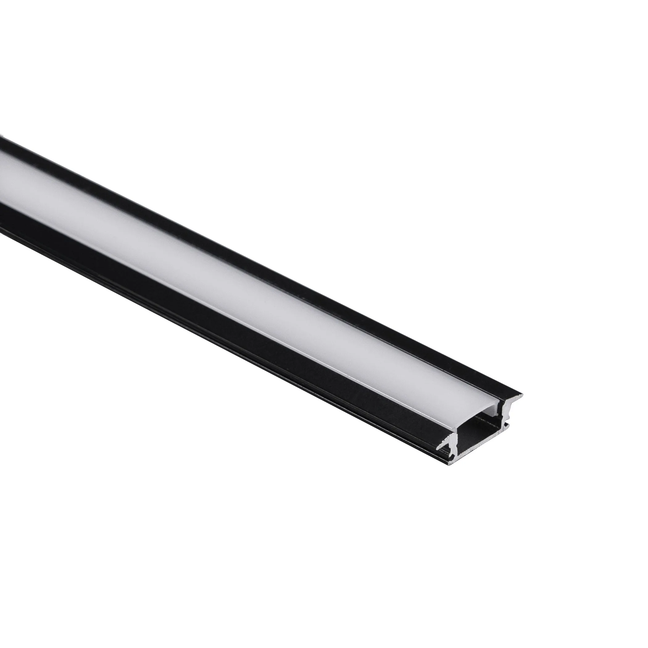 Профиль алюминиевый врезной LIRA-1707 с экраном, цвет черный, 2м, AKS (в комплекте 4 заглушки и 4 крепления)