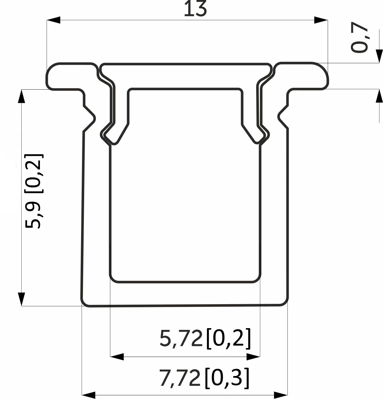 Накладной профиль, ширина 13 мм, высота 5,9 мм, матовый экран, длинна 2м., внутренняя часть вмещает ленту шириной до 5 мм, цвет черный.
