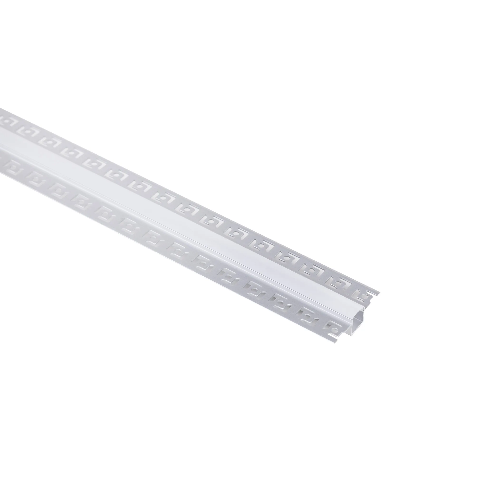Профиль алюминиевый встраиваемый в гипсокартон с экраном в индивидуальной упаковке, в комплекте с заглушками, предназначен для монтажа светодиодной ленты, длина 2м., внутренняя часть вмещает ленту шириной до 12 мм.