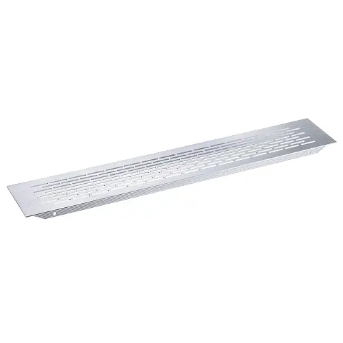 Решетка вентиляционная 480x80 мм - элемент системы обмена воздуха в помещении, специально предназначенный для наружной установки в мебельное изделие. Решетка закрывает вентиляционное отверстие и обеспечивает нормальную циркуляцию воздуха.