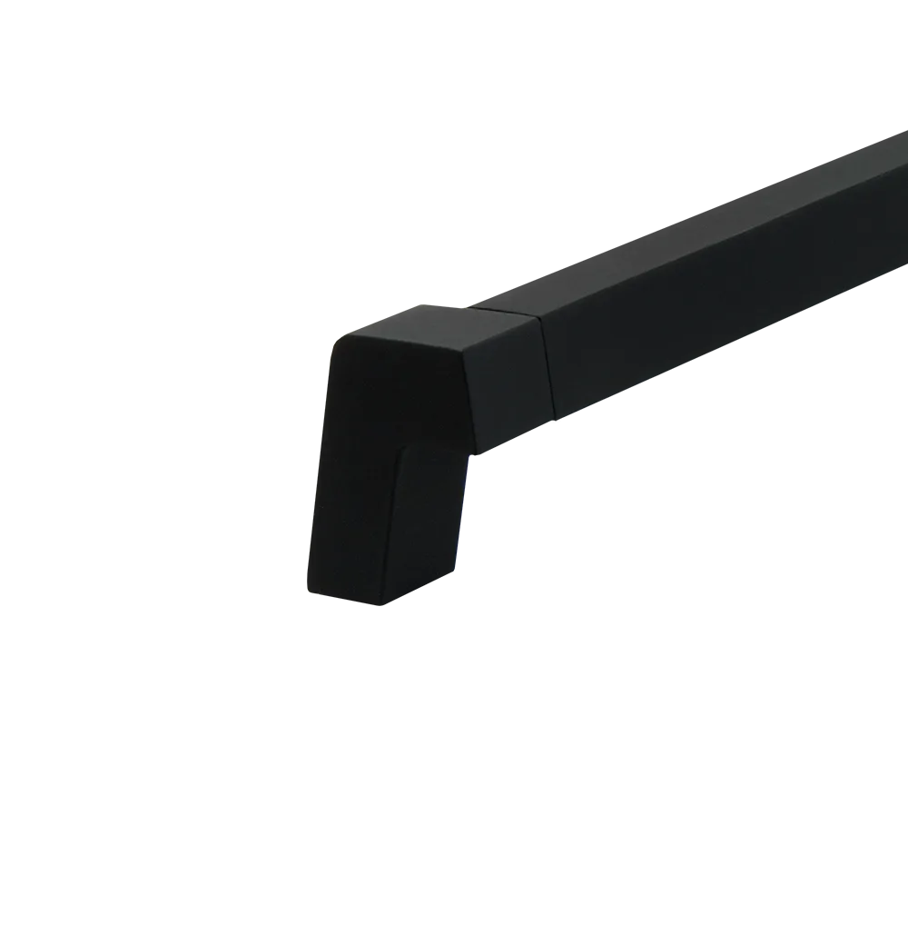 Ручки Lungo – тонкие и длинные, они отличаются изящной геометрией. Основание ручки имеет форму квадрата, который плавно переходит в изящный изгиб стойки, сохраняя при этом легкость и воздушность визуального облика фасада. Ручки Lungo длиной 800 мм доступны в двух цветовых вариантах: матовый черный и матовый графит.