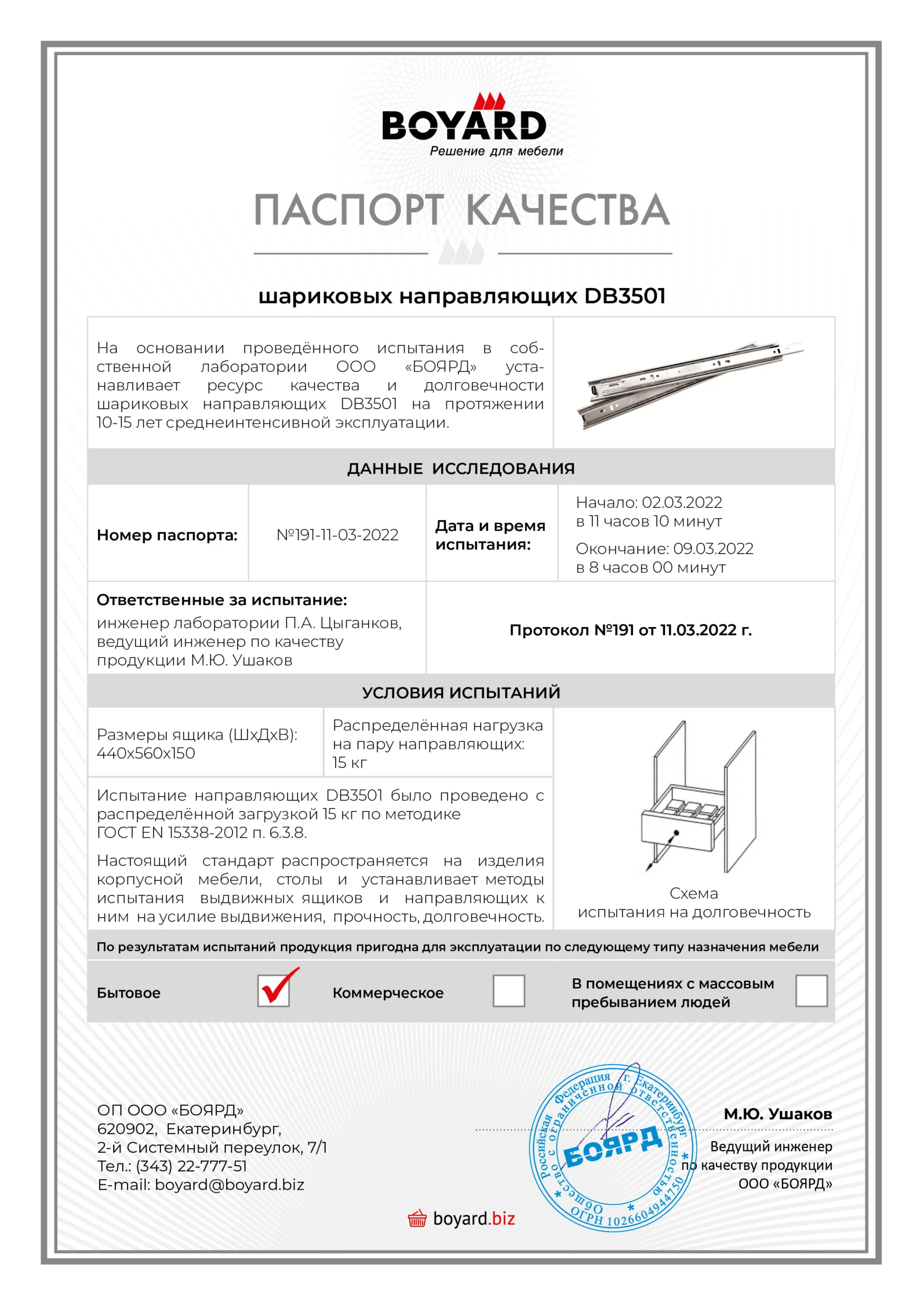 | Усилие на открывание ящика | 2,5 - 3 кг |