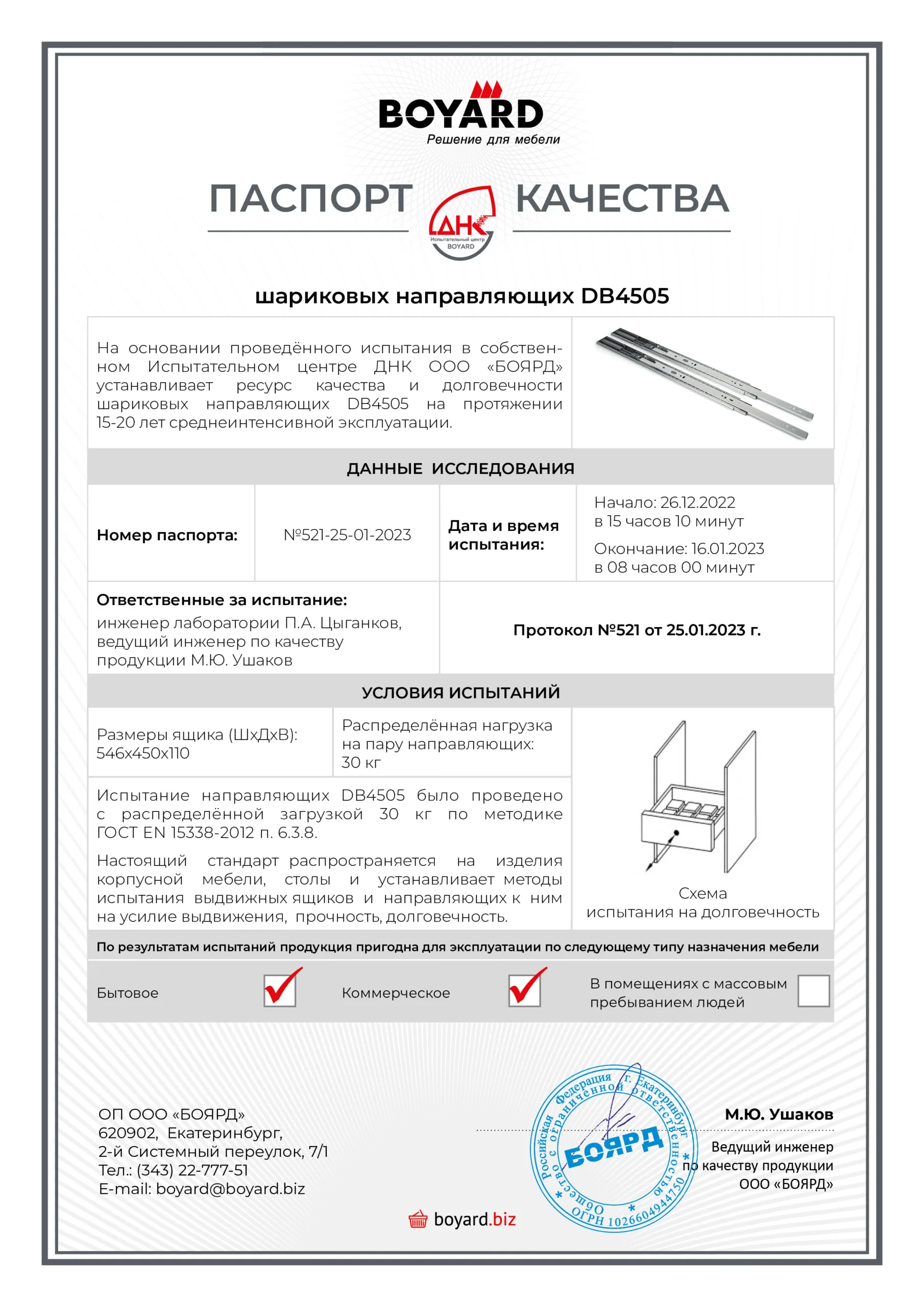 Направляющие представлены в размерной линейке от 300 до 550 мм. DB4505 обеспечивают полное выдвижение с 450 мм.
