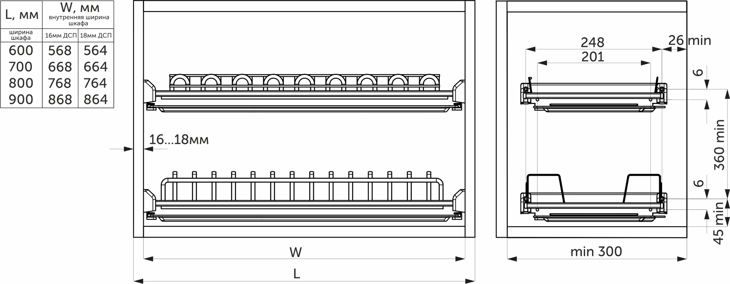 | Тип кухонного наполнения | Сушки в верхнюю базу |