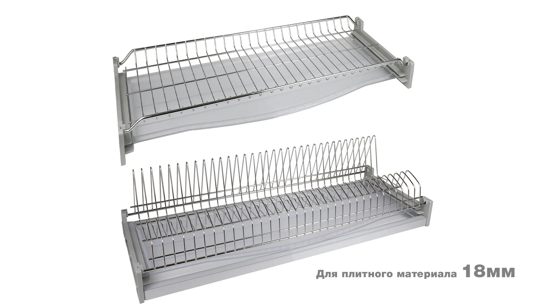 STUDIO 18 SU18 — сушка для посуды в верхнюю базу из прутковой нержавеющей стали для мебели из плит толщиной 18 мм. Модель монтируется в короб без малейших зазоров. Подходит для коробов без дна (рекомендовано) и "глухих".