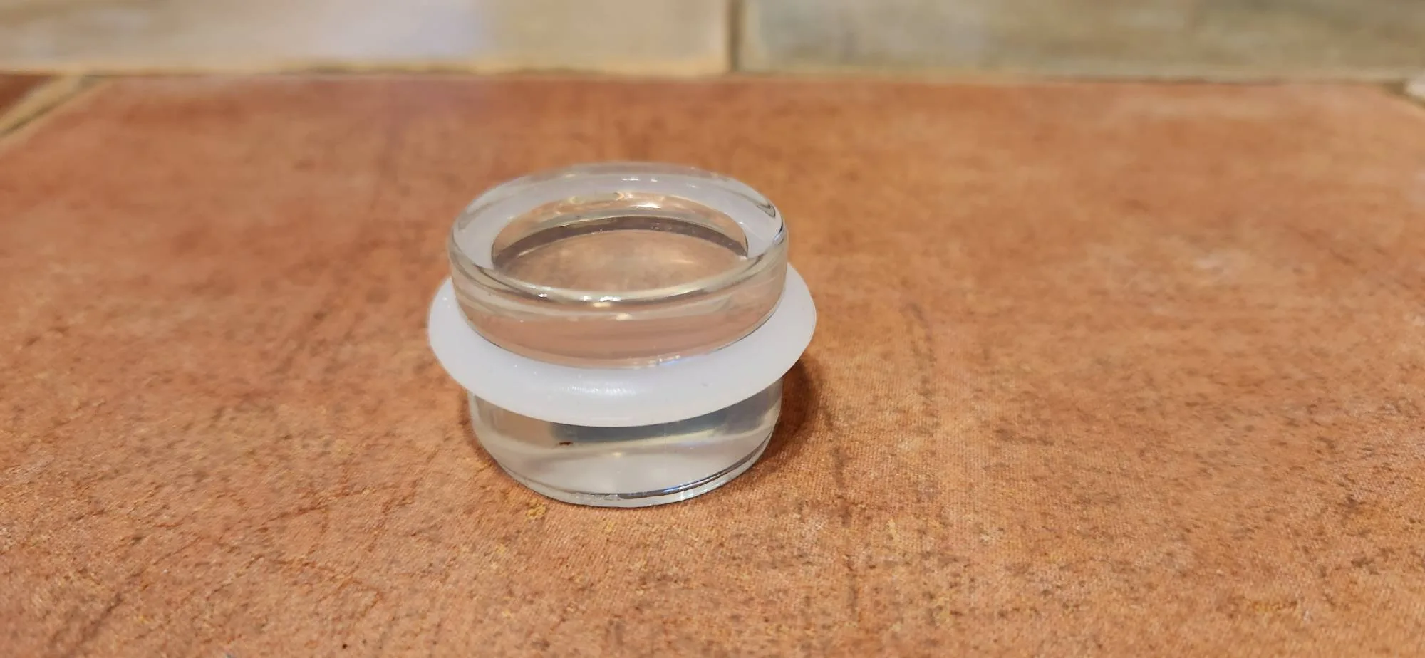 Диаметр: 4 см, высота: 3 см, цвет: прозрачный.