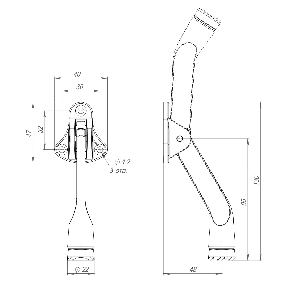 Фиксатор открывания двери «козья ножка» — надёжное решение для коммерческих и общественных помещений. Позволяет заблокировать дверь в любом открытом положении путём опускания фиксатора.