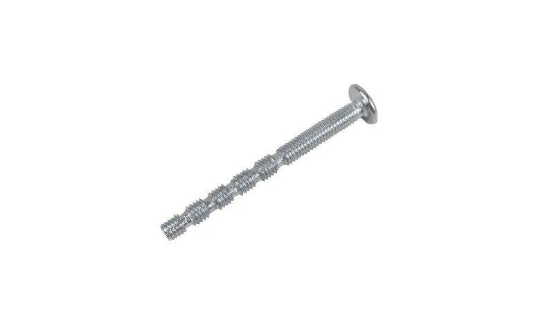 Винт мебельный М4*45 – сегментный винт с резьбой M4, предназначенный для крепления мебельных ручек на фасады из МДФ, ДСП, пластика или стекла толщиной от 10 до 40 мм. Универсальность применения винта обусловлена наличием 5-ти сегментов без резьбы в диапазоне от 20 до 45 мм с шагом 5 мм. Это позволяет изменить длину винта, исходя из толщины фасада, не повредив саму резьбу. Для этого необходимо удалить нужное число сегментов механическим способом.