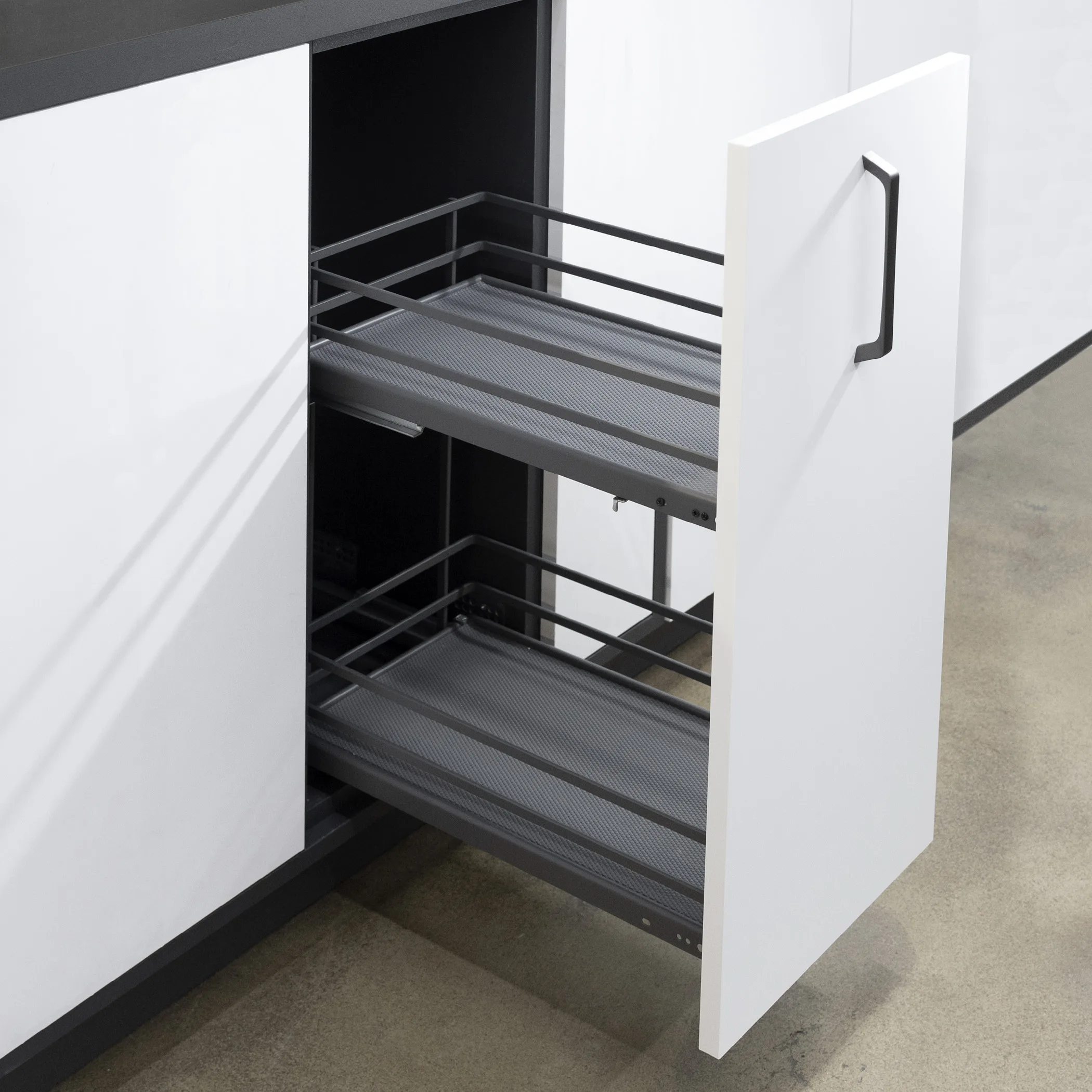 Нижнее карго FOCUS удобно для кухонь, где важна высокая вместительность и стабильность механизма. Благодаря продуманной конструкции и скрытым направляющим полного выдвижения содержимое легко достать, а фасад закрывается плавно и аккуратно.