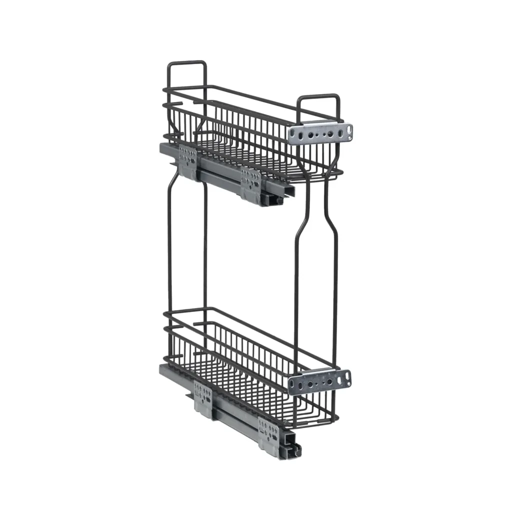 Продуманная конструкция корзин помогает организовать хранение банок, бутылок, столовой посуды, продуктов на кухне.