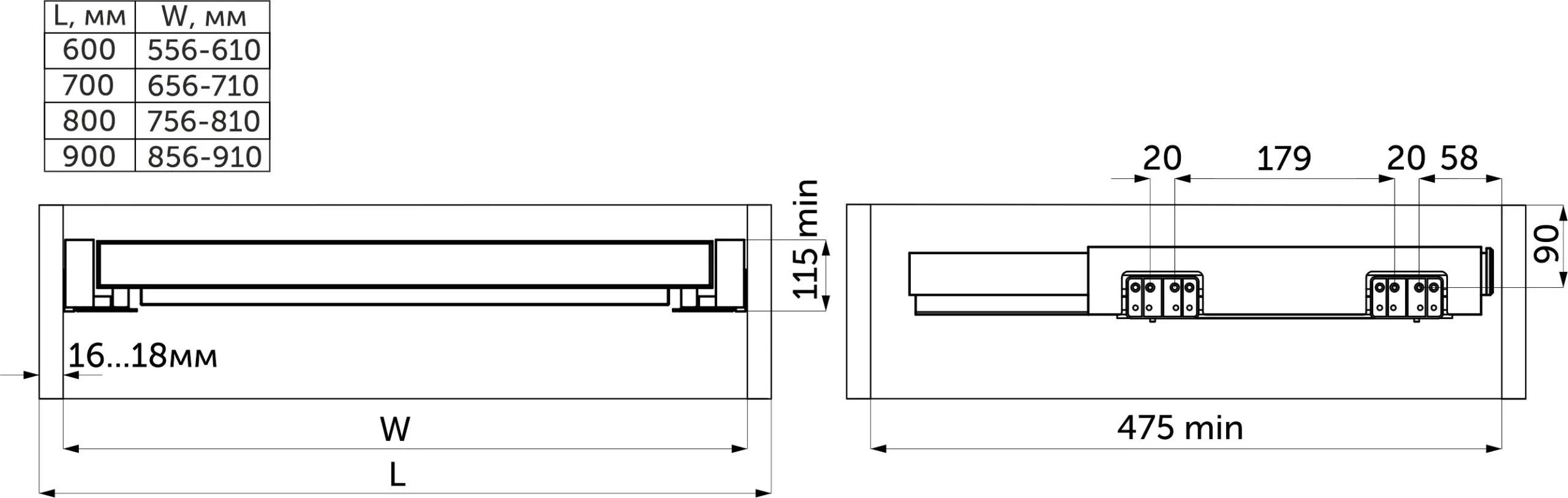 | Тип направляющей | Скрытого монтажа |