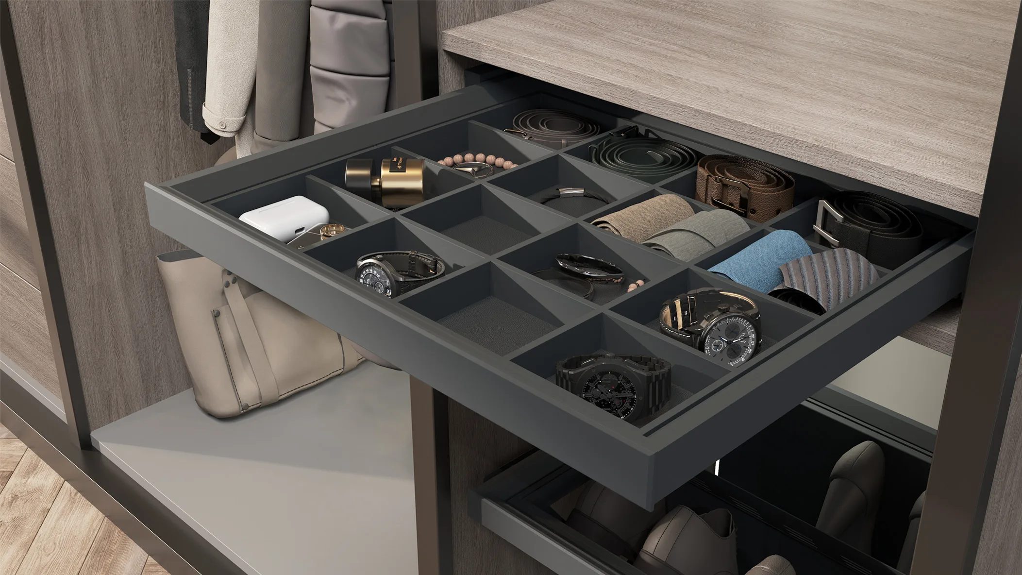 Выдвижная полка-органайзер 600 BRUNO для аксессуаров, графит PRIME by AKS